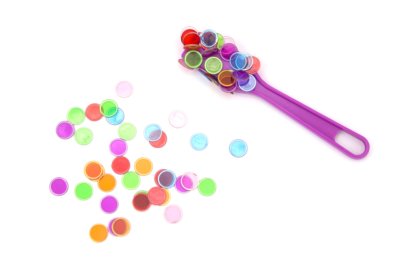 Sac avec une tige magnétique et 60 jetons de bingo magnétiques. À utiliser pour différentes activités de motricité fine.