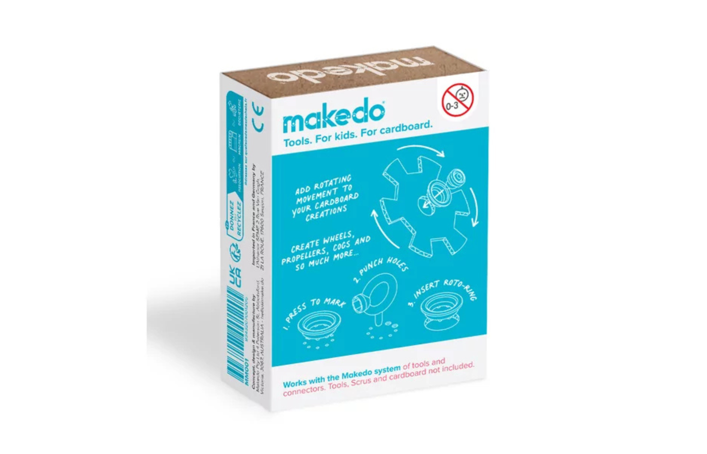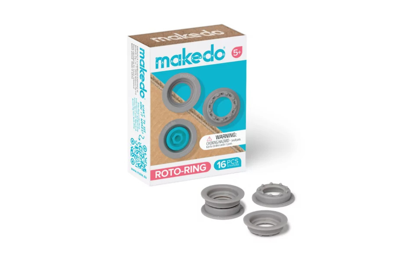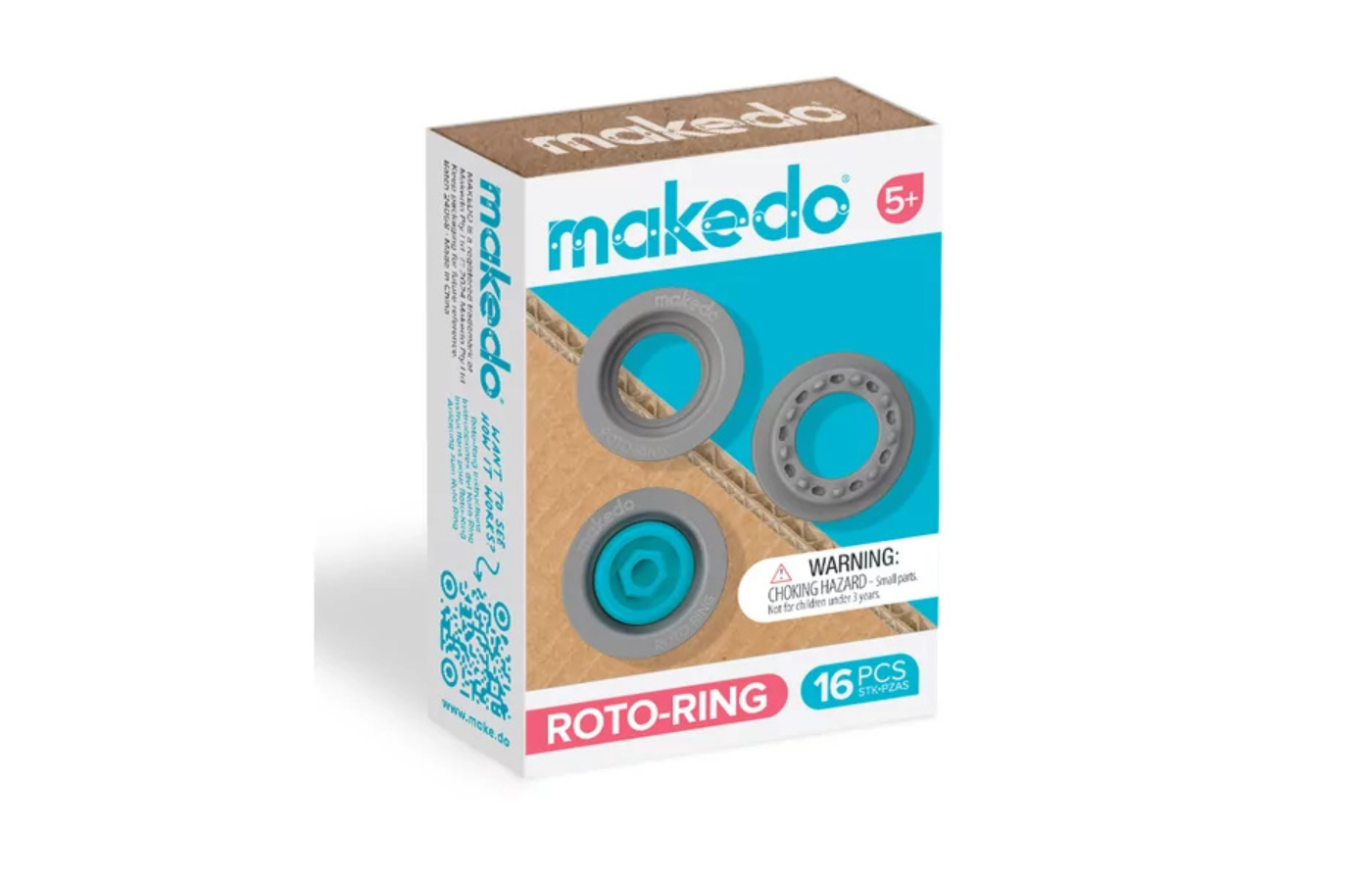 En permettant des mouvements de rotation, de rotation et de glissement, le Roto-Ring – fabriqué à partir de matériaux 100 % recyclés – ajoutera un monde de nouvelles possibilités à vos créations Makedo.