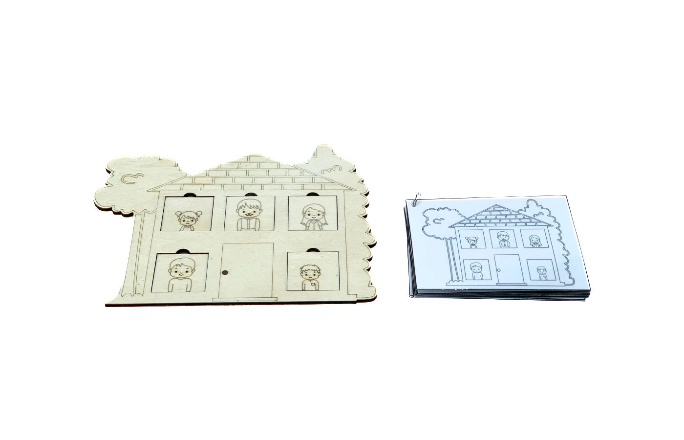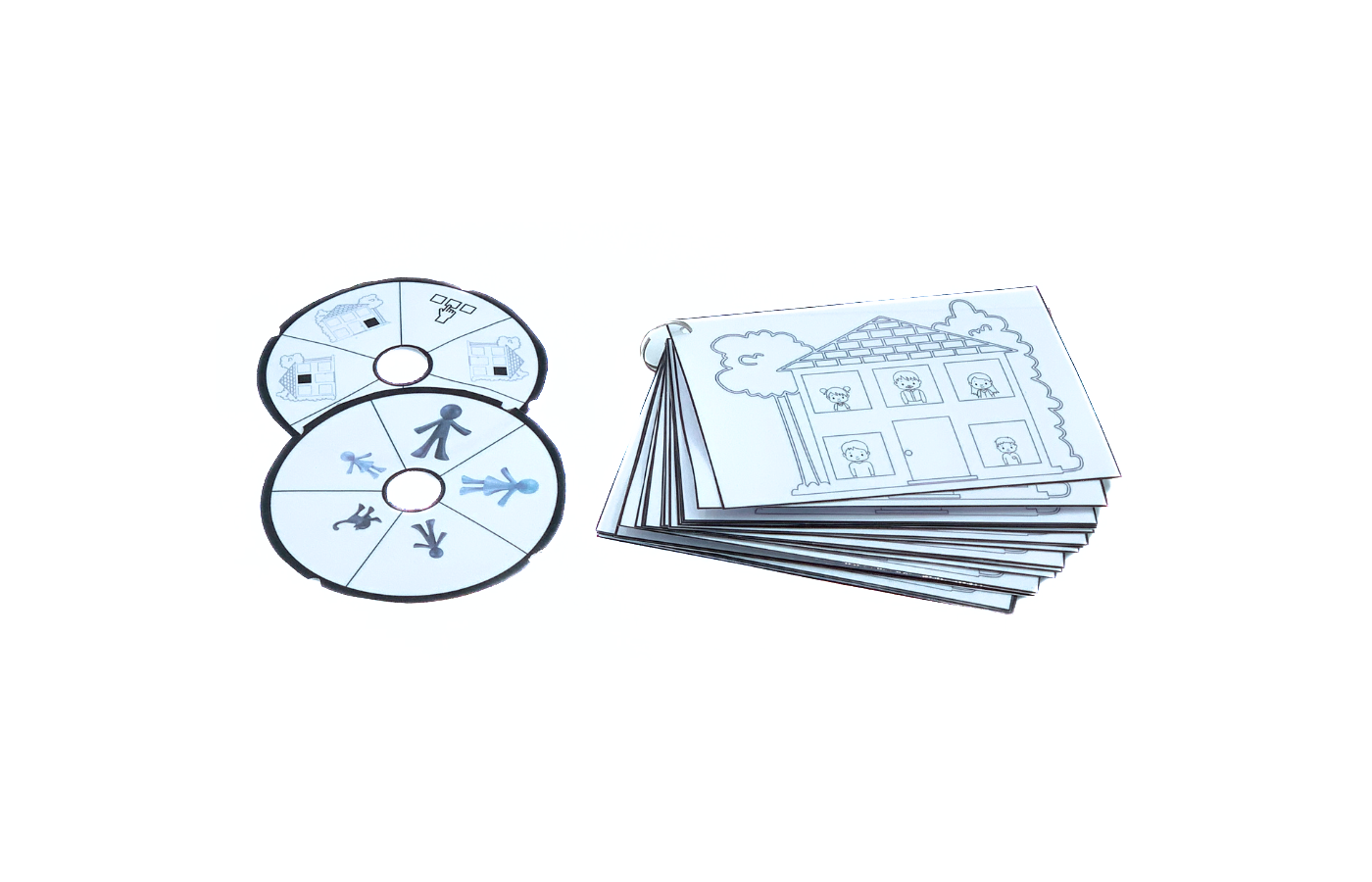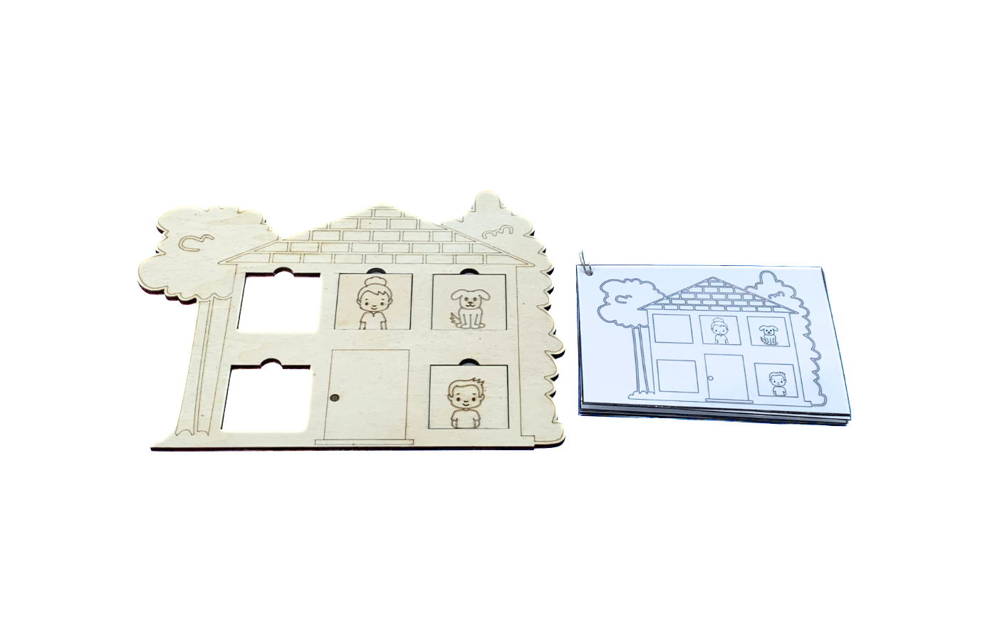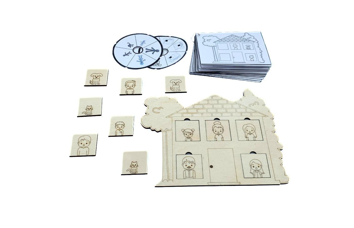 Jeu de motricité fine en rapport avec l'orientation spatiale. Exercez les concepts spatiaux en plaçant les membres de la famille au bon endroit dans la maison.