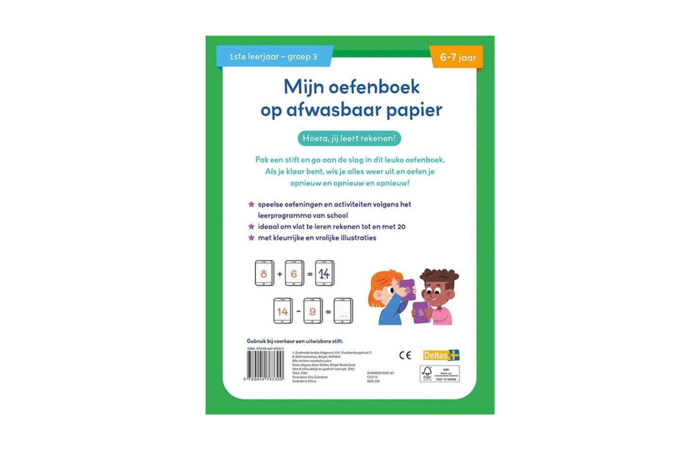Ce joli livre d'exercices sur papier effaçable est réutilisable et donc idéal pour les enfants qui font leurs premiers pas vers le comptage. Laissez votre enfant résoudre les exercices avec un marqueur, effacer et recommencer. Plaisir d'exercice sans fin garanti !
