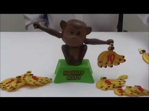 Accrochez un nombre égal de bananes colorées à chaque main du singe. Si les quantités sont égales et que la somme est correcte, le singe regardera droit devant lui et ses bras seront horizontaux. Si les quantités ne sont pas égales, ses yeux regarderont vers le bas et vers le haut et ses bras bougeront de haut en bas. Cela signifie qu'il est temps d'essayer à nouveau !