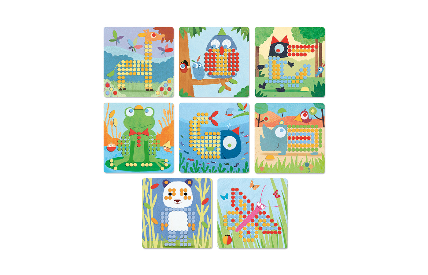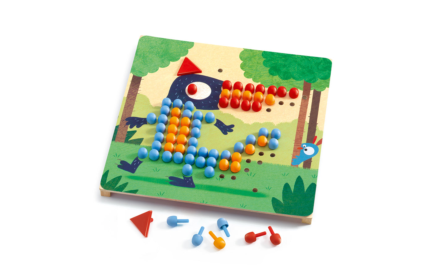 Les enfants peuvent trier les couleurs sur le tableau, reproduire les cartes modèles ou simplement faire leurs propres dessins avec ces perles colorées.