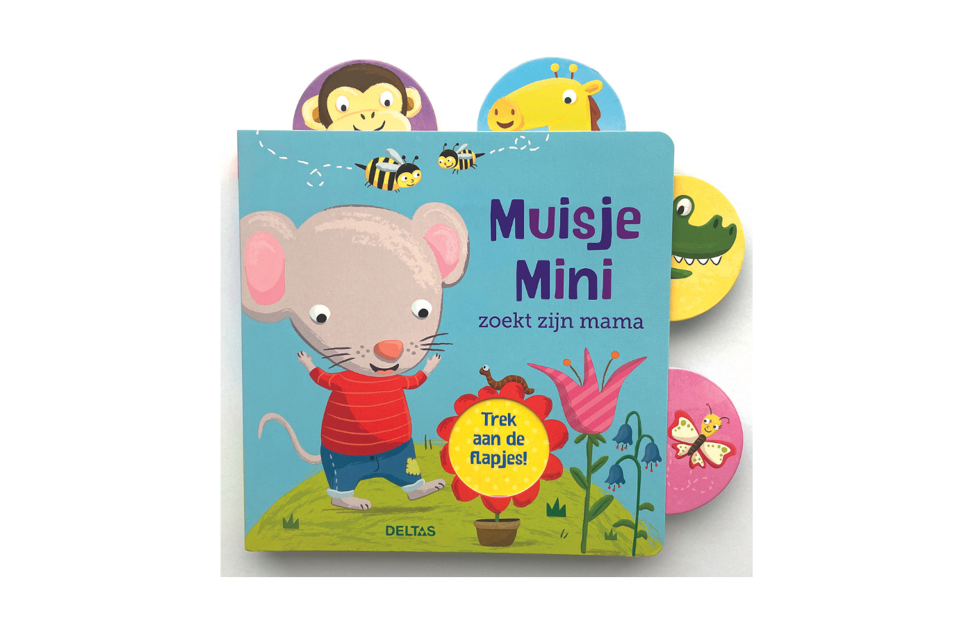 Laissez votre enfant tirer sur les onglets en carton rigide pour aider Muisje Mini à chercher !