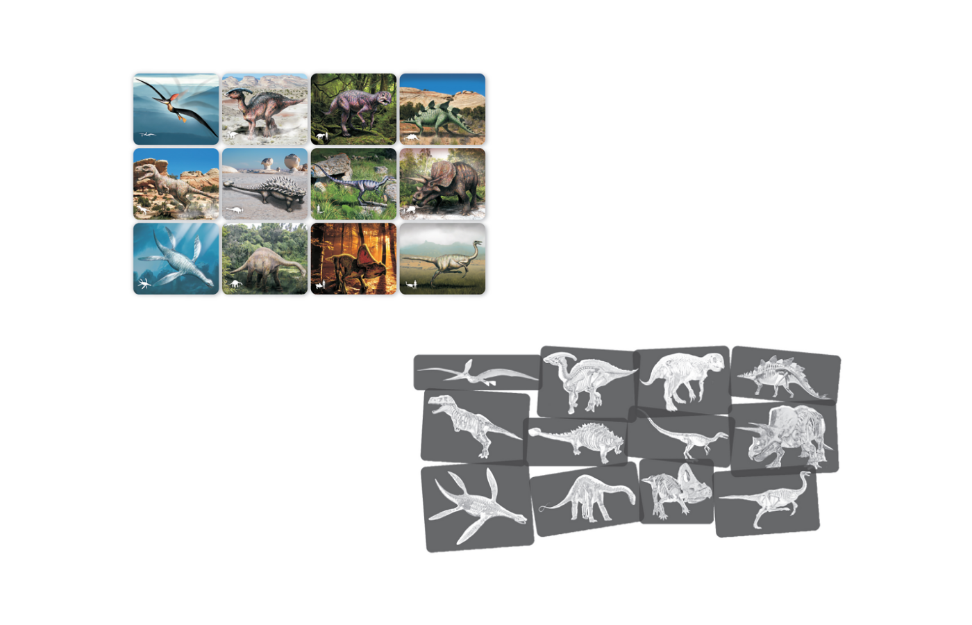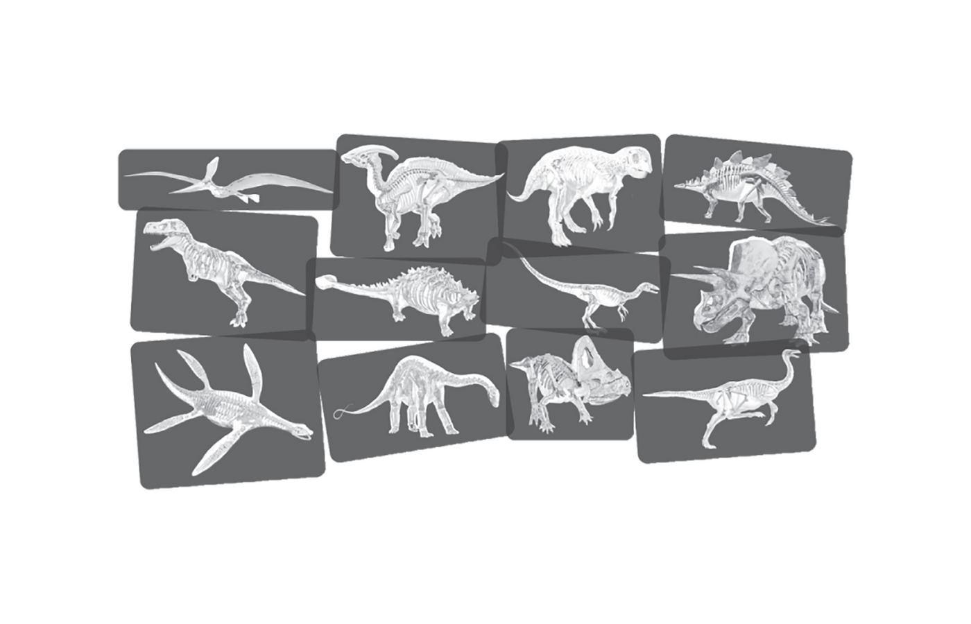 Introduisez la paléontologie auprès des jeunes enfants avec 12 magnifiques cartes de découverte et des radiographies correspondantes. Superposez les radiographies sur les cartes photo pour voir les corps de l'intérieur.