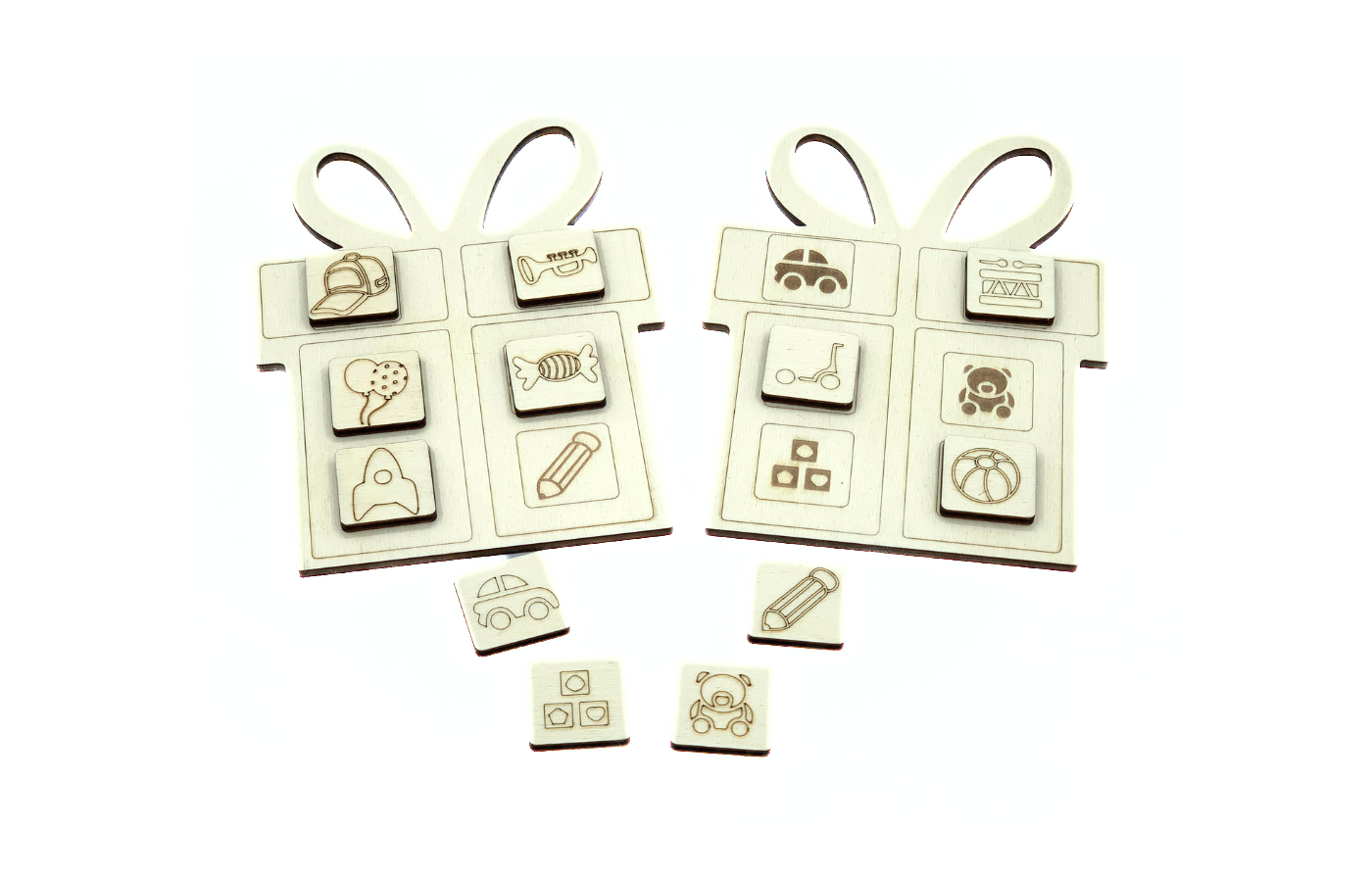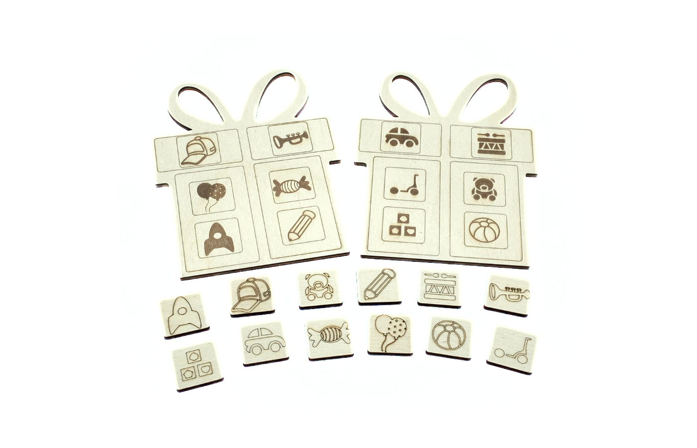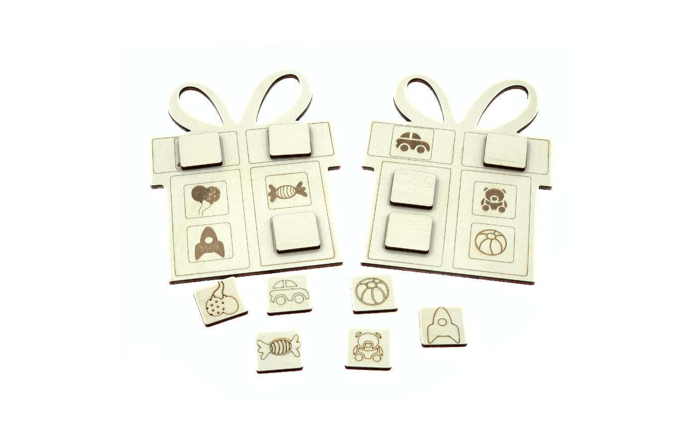 Mettez tous les petits cartons en bois dans un sac en coton et tirez un cadeau un par un. Avez-vous le cadeau sur votre carte de bingo ? Alors vous pouvez le mettre (à l'envers) sur votre carte de bingo.
