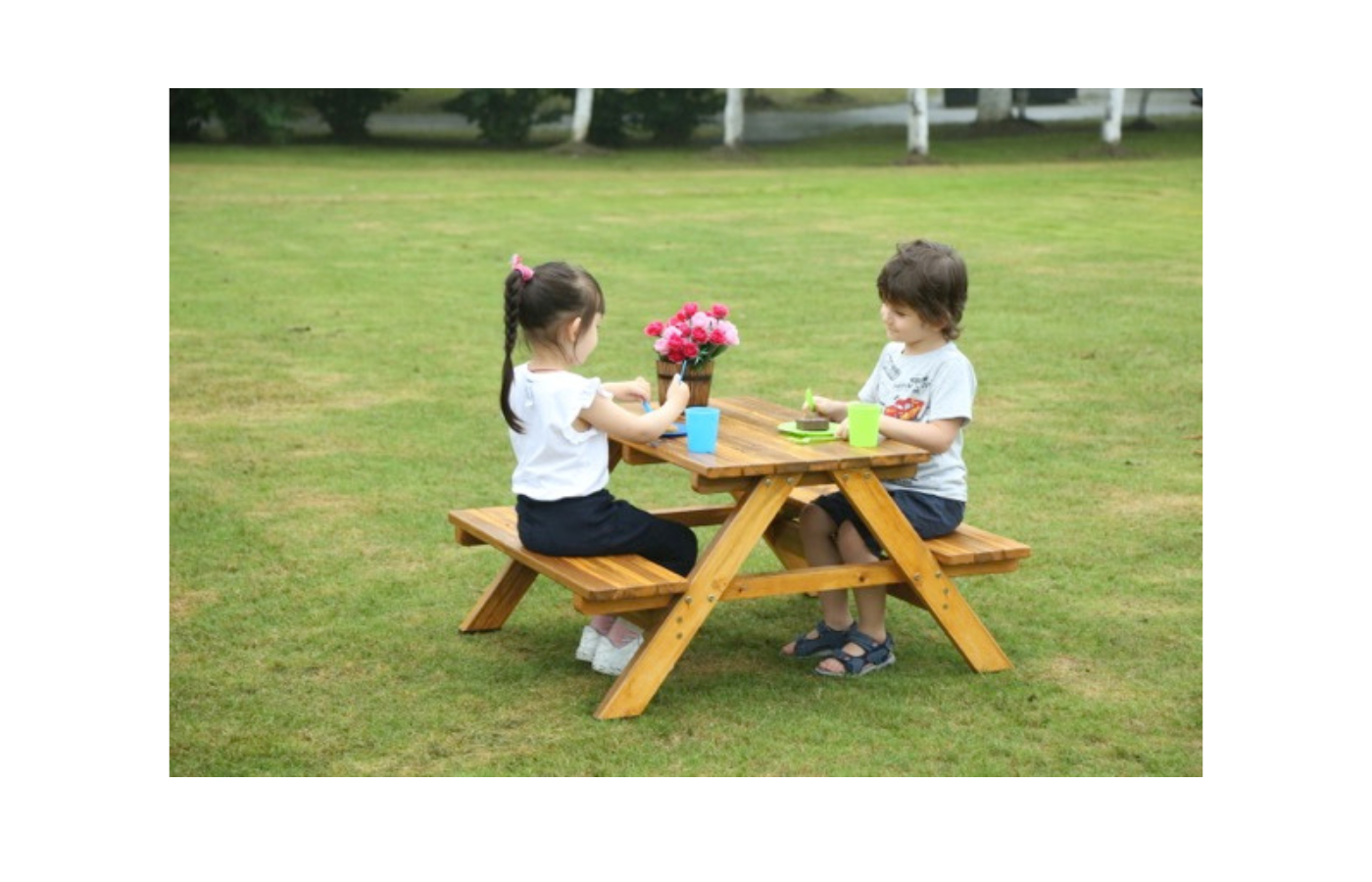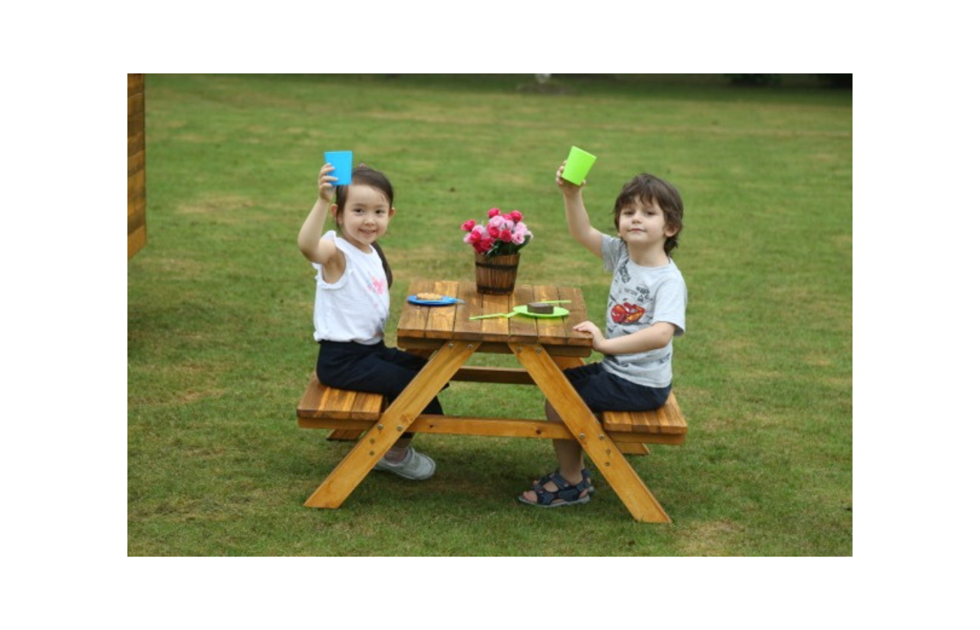 Cette table de pique-nique robuste est adaptée pour un maximum de 4 enfants. La partie assise est en pin imprégné avec un vernis à l'huile. Les pieds sont en WPC résistant aux intempéries. Montage simple.
