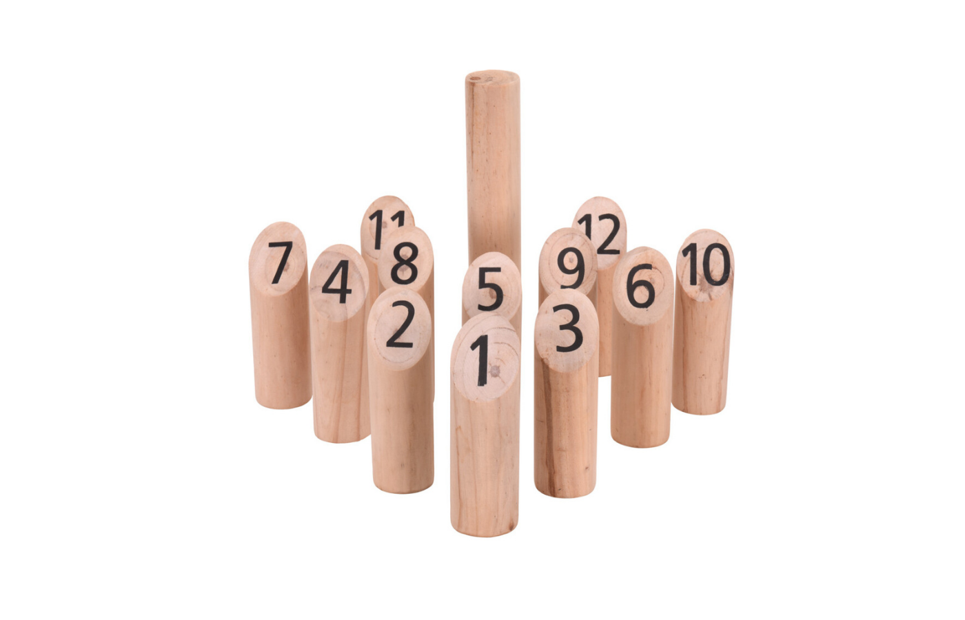 Placez les 12 bâtons sur une pelouse et lancez votre bâton d'une distance de 3 à 4 mètres. Chacun lance son bâton à tour de rôle et note ses points. Les bâtons tombés sont remis debout à l'endroit où ils sont tombés, de sorte qu'ils deviennent de plus en plus dispersés sur la pelouse. Le gagnant du jeu est celui qui marque exactement 50 points. Si vous avez plus de 50 points, vous êtes pénalisé et revenez à 25 points.