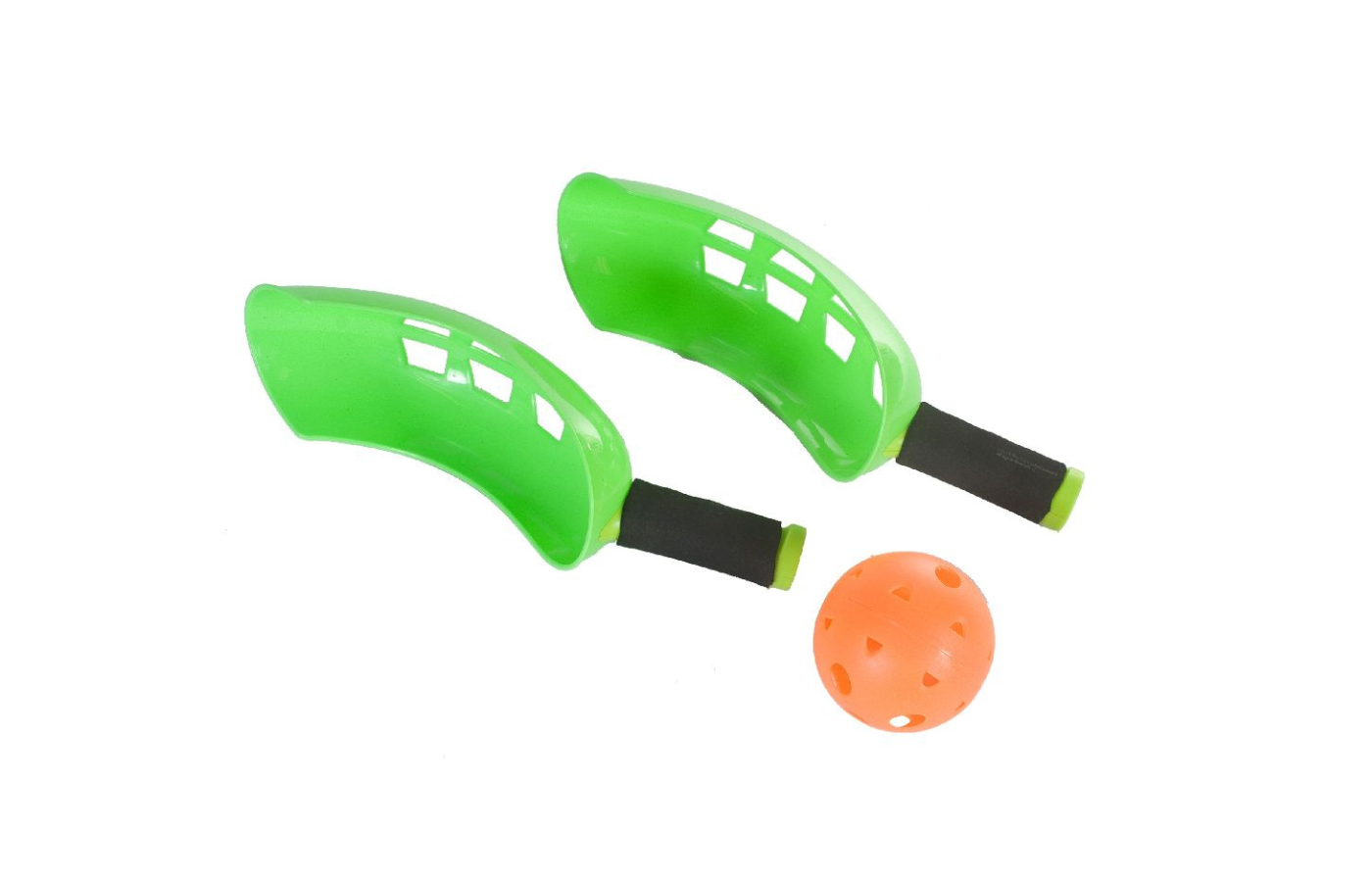 Avec ce set de scoopball, vous avez du plaisir à deux ! Lancez la balle avec la scoop, et votre coéquipier la rattrape avec. Livré dans une combinaison de couleurs vert et orange dans un filet avec une étiquette.