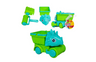 Rendez une journée à la plage encore plus amusante avec ce véhicule dinosaure. Disponible en couleur bleu-vert. Lorsque vous le démontez, il se transforme en seau, pelle et rouleau à figures de sable.