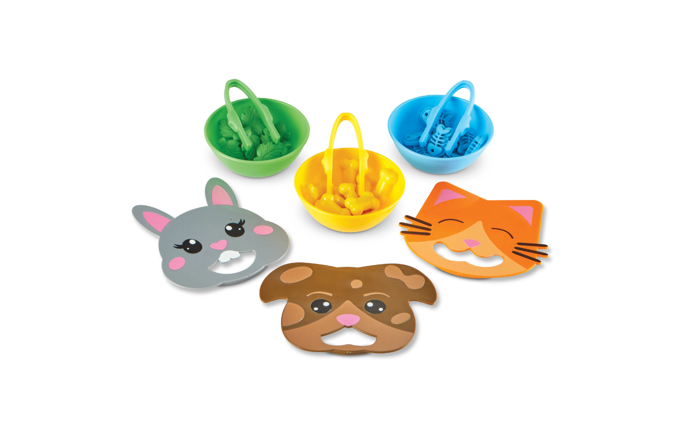 These adorable animals are hungry!! Kids grab their tweezers, pick up a piece of their favorite candy, and feed it to their new friend. With three levels, it's a delicious way to build hand strength, coordination, and more. Includes 3 tweezers and 30 counting candies.