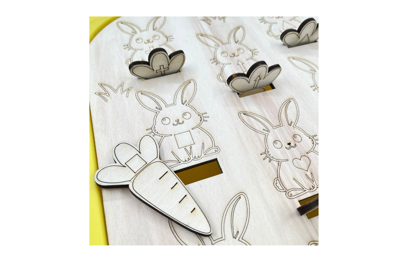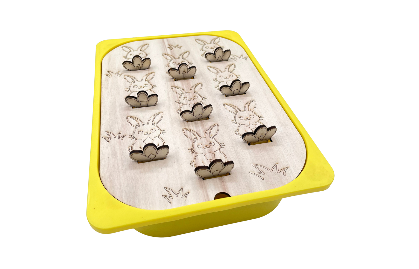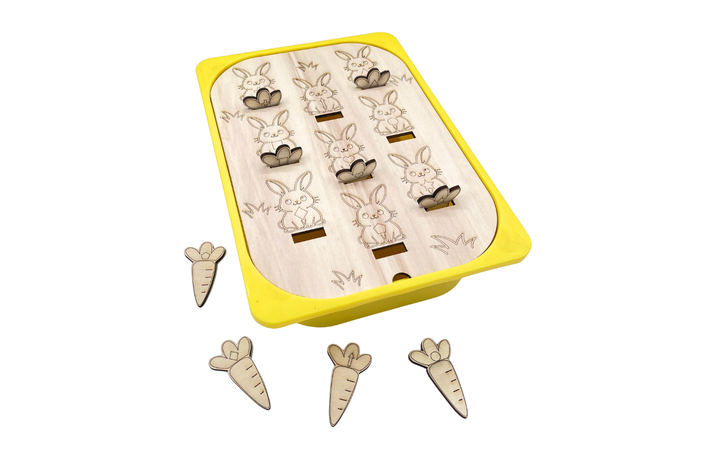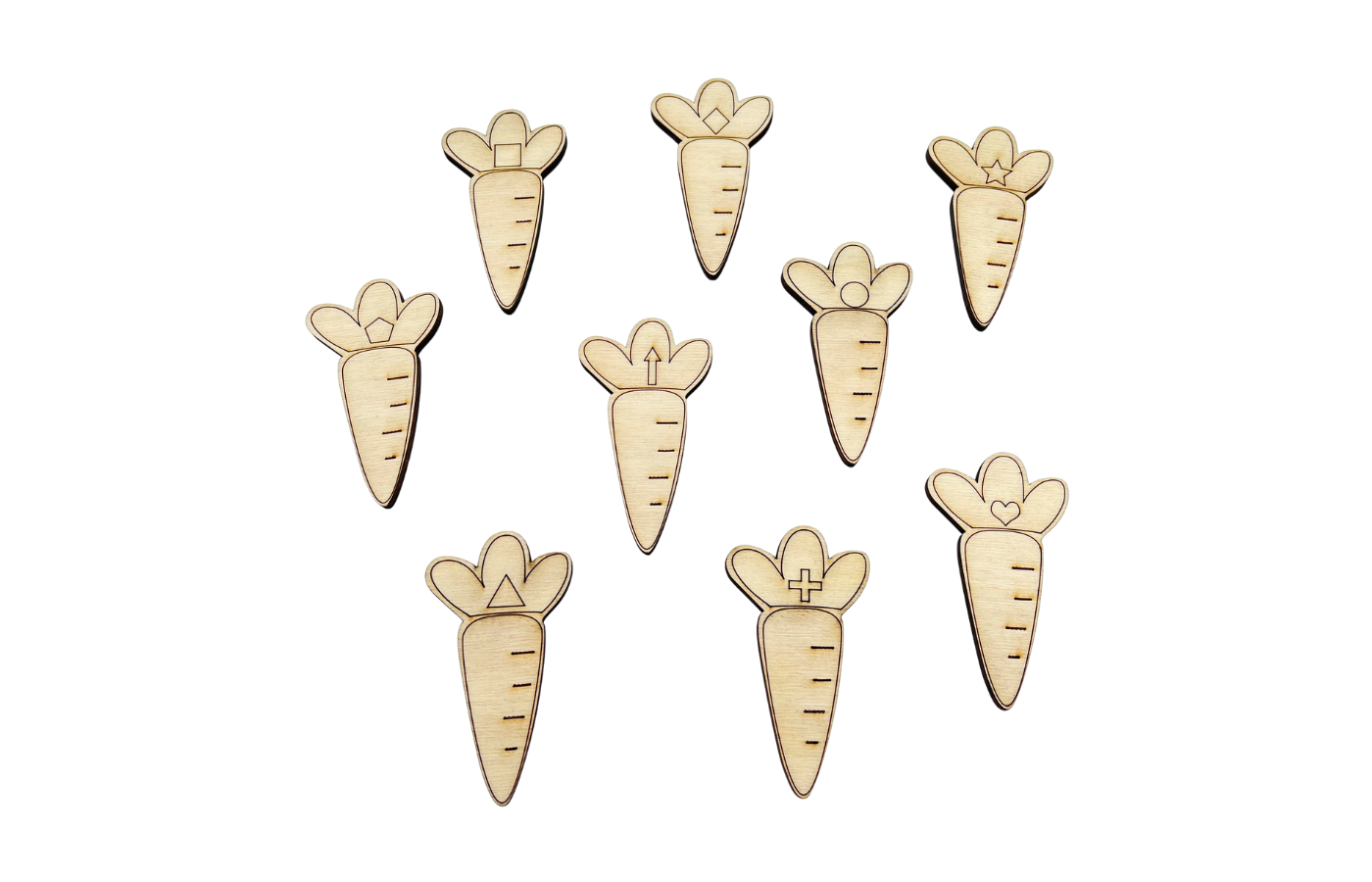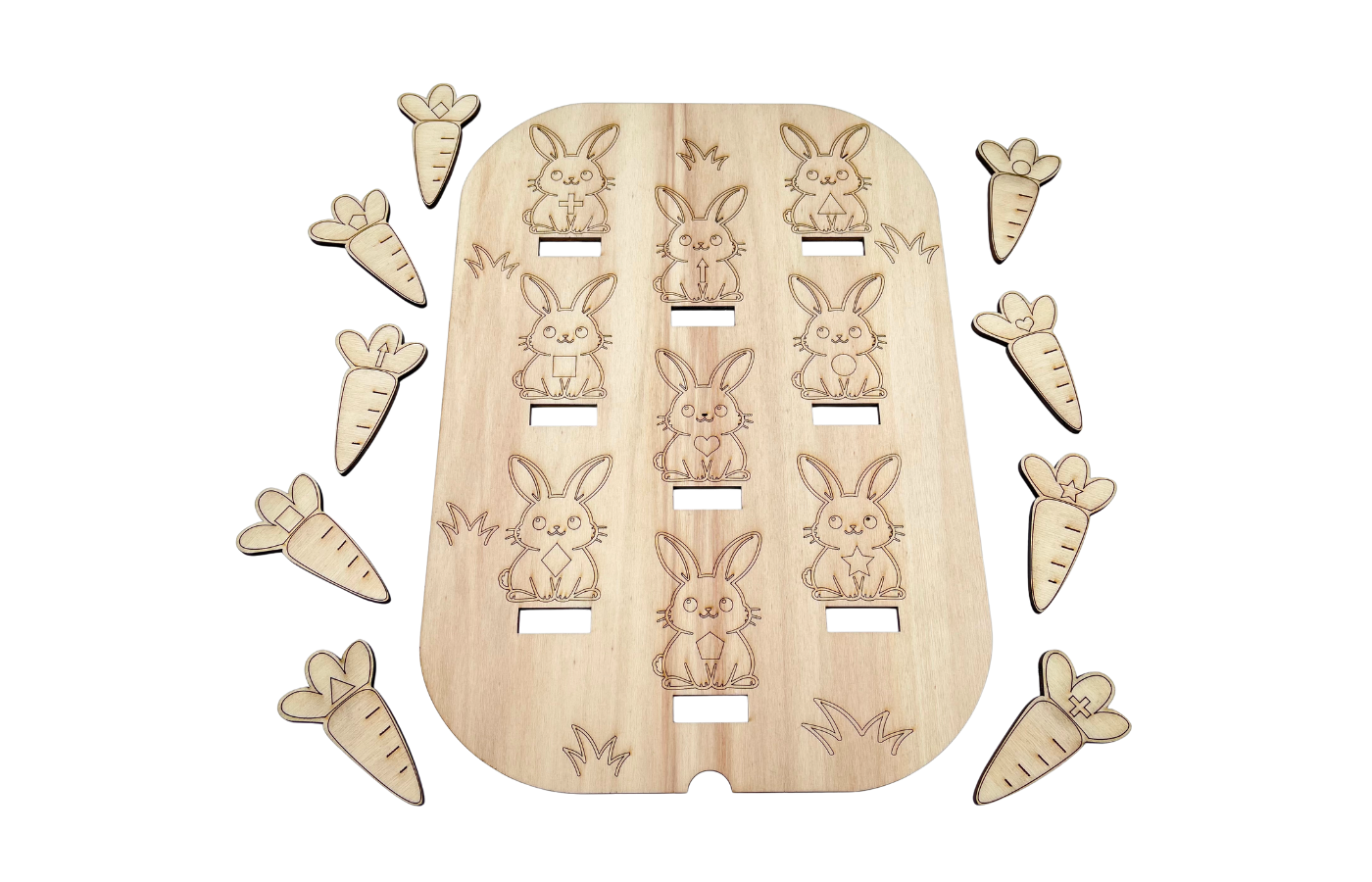 Help de konijnen hun favoriete traktatie te vinden! Elke wortel heeft een speciaal symbool dat past bij het konijn met hetzelfde teken. Steek de wortel in de juiste opening met hetzelfde symbool.