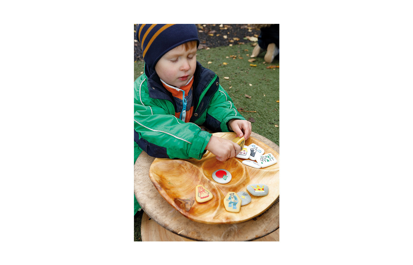 The stones are made from a resin/stone mix so that they can be used in sand, soil, water, grass,... anywhere you want. This gives extra possibilities for sensory play and makes playing with the stones extra fun and attractive.