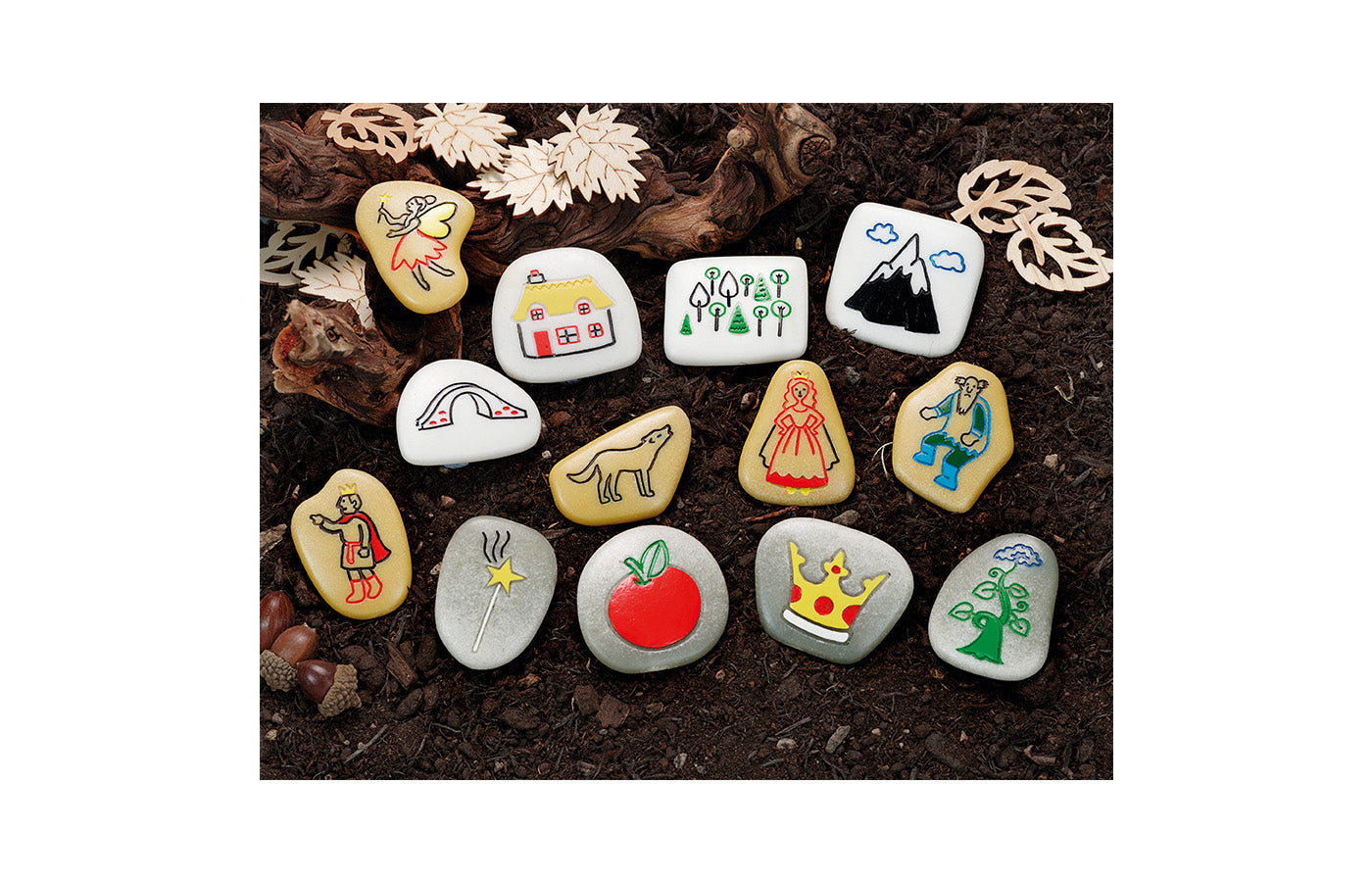 set of 13 different storytelling stones in the theme of 'fairy tales' (size largest 5 x 5 cm)