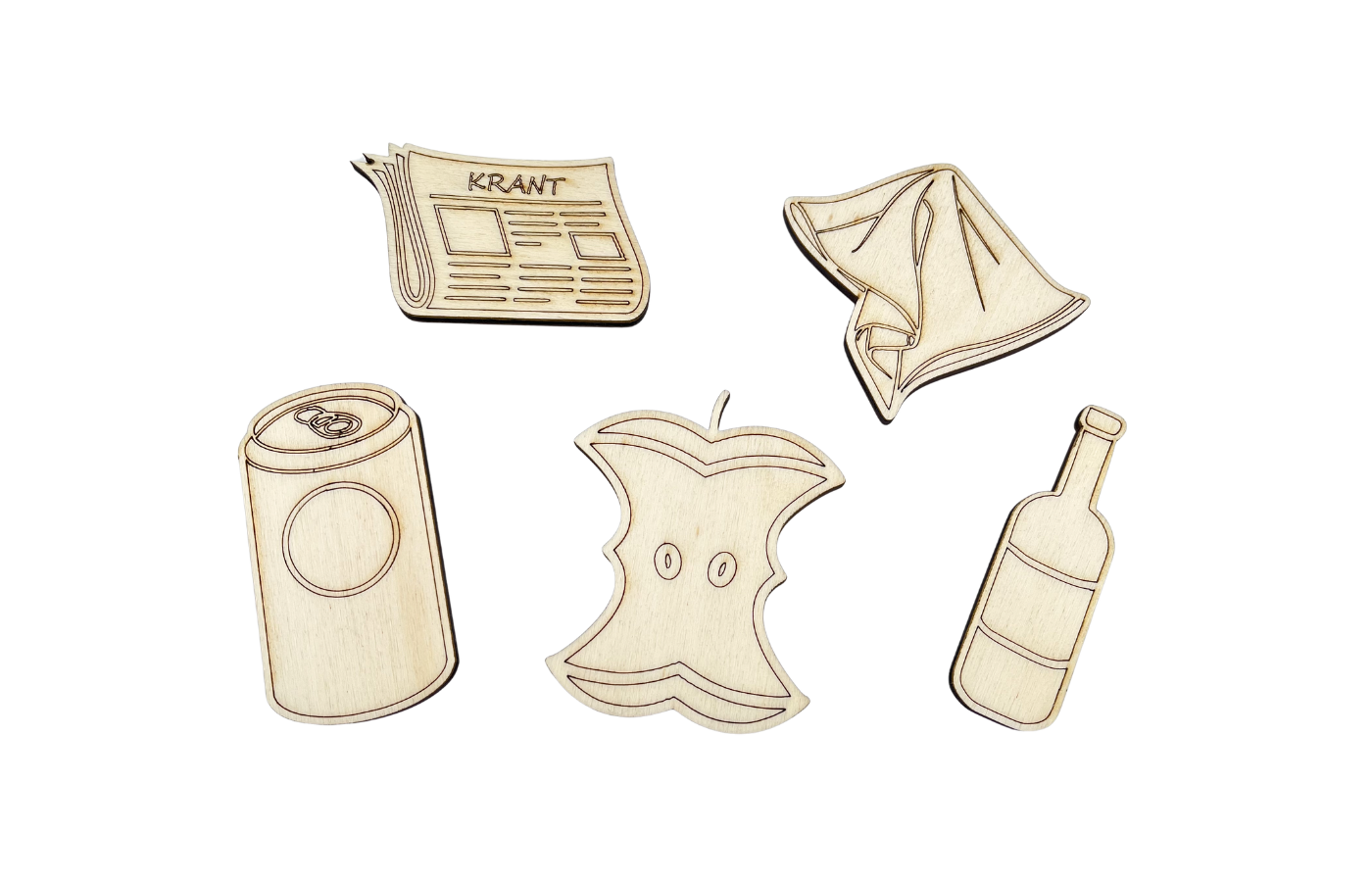 5 houten figuren (afm. 7 x 5,5 x 0,5 cm)